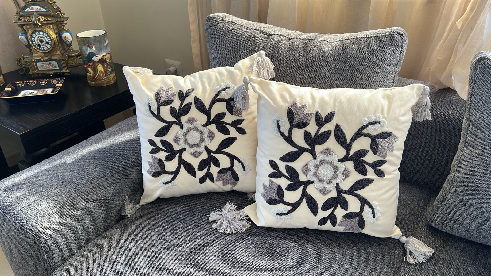 Embroidered Floral Cushion Cover with Tassels – Modern Garden Design