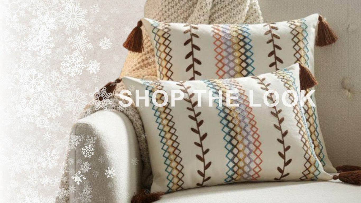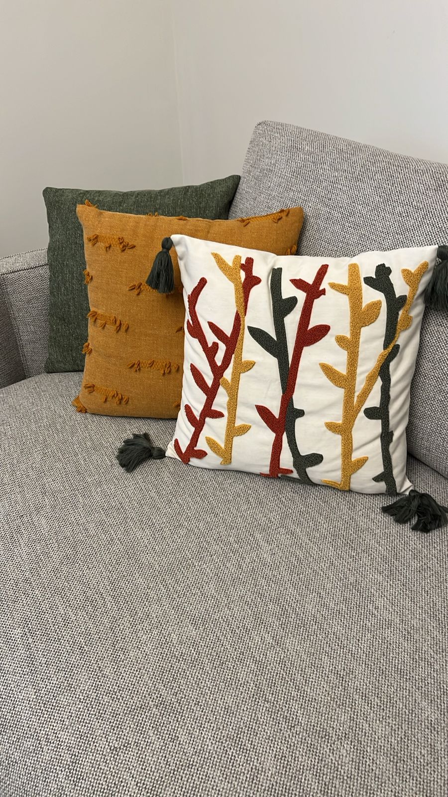 Embroidered Olive Branch Cushion Cover with Tassels – Botanical Square Design