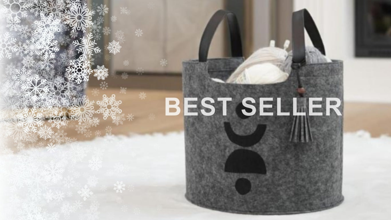 Dark Grey Felt Storage Tote with Handles – Abstract Print