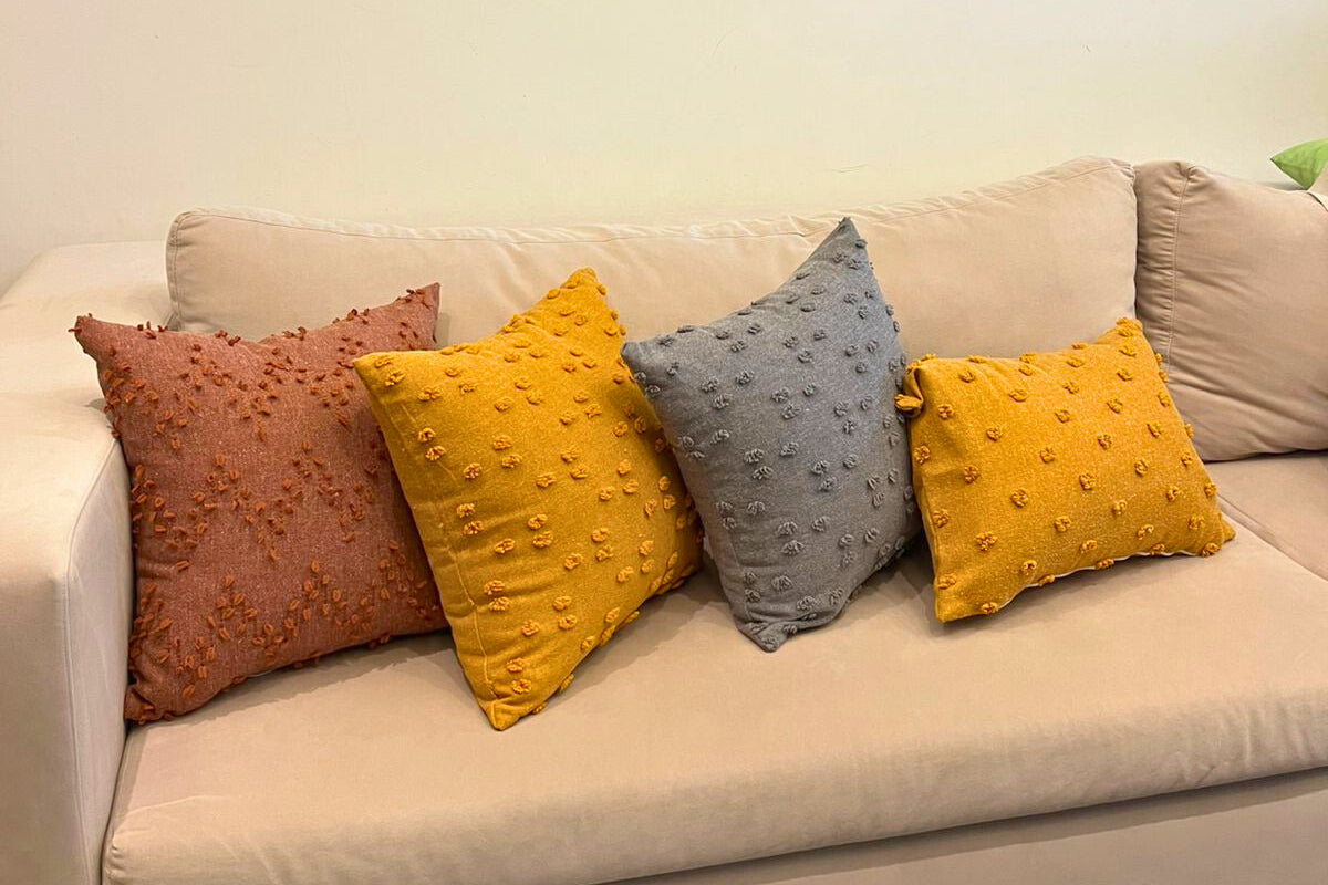 Embroidered Floral Cushion Cover with Mustard Tassels – Ivory
