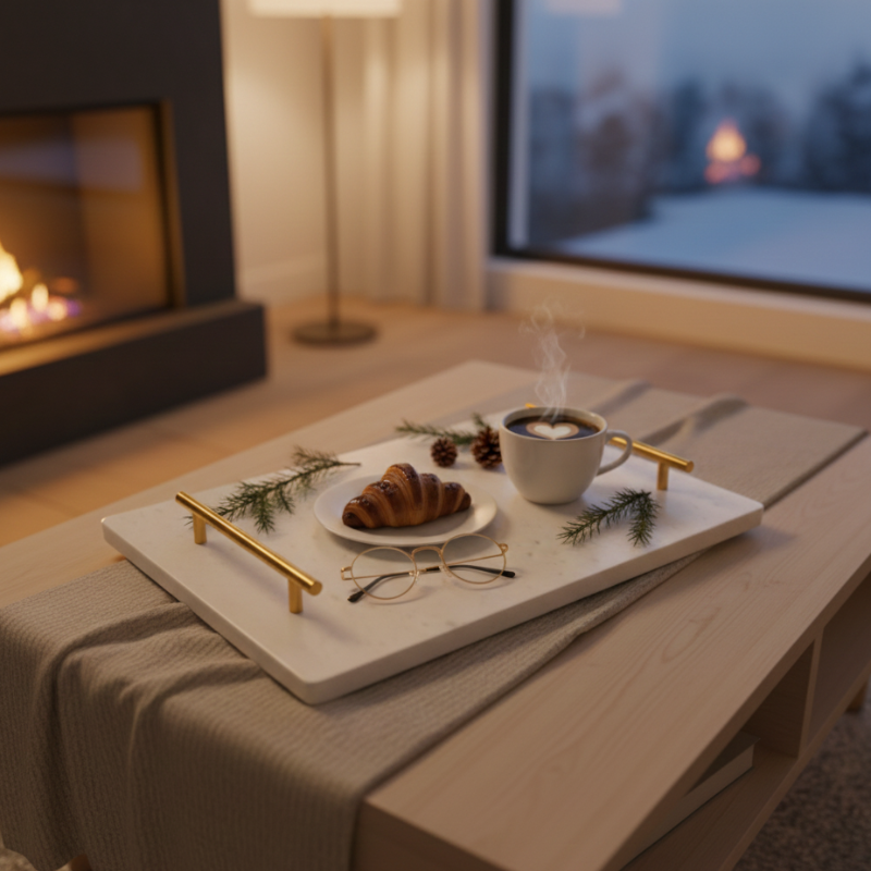 Add elegance to everyday living with our White Marble Tray with Brass Handles, available in both small and large sizes. Hand-cut from premium white marble, each tray features subtle natural veining and a smooth, polished surface. The sleek brushed gold brass handles offer a modern contrast and luxurious finish.
